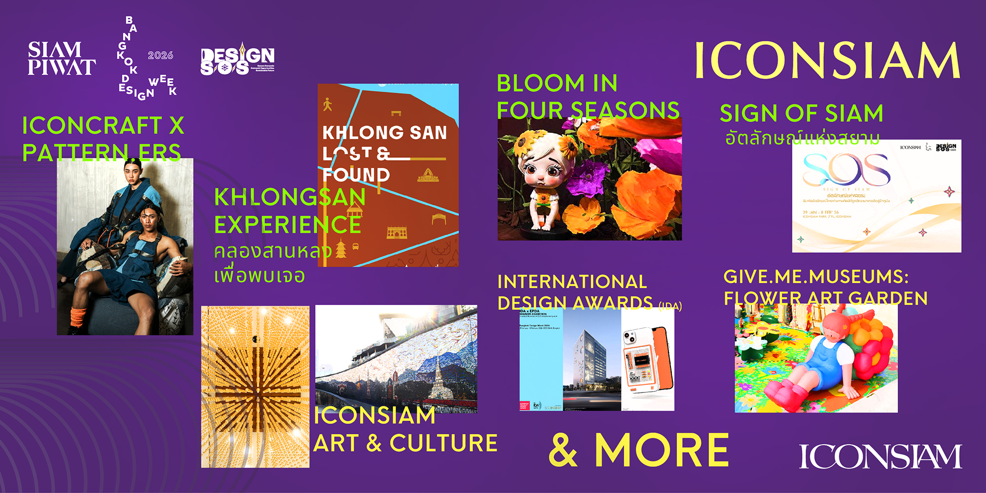 ICONSIAM ถ่ายทอดแนวคิดการจัดแสดง SIGN OF SIAM ในฐานะหนึ่งในพื้นที่จัดงานเทศกาลงานออกแบบกรุงเทพฯ Bangkok Design Week 2026 ภายใต้ธีม DESIGN S/O/S โดยการตีความ “อัตลักษณ์ของสยาม” โดยนำเสนอผ่านผลงานของศิลปิน 4 ท่าน ได้แก่ อ.ธงชัย ศรีสุขประเสริฐ, ปฐมพงศ์ บูชาบุตร, ยี่ ดวงติ๊บ และ วันดา ใจมา เพื่อสะท้อนให้เห็นว่า อัตลักษณ์ไทยไม่ใช่สิ่งที่ถูกเก็บรักษาไว้ในอดีต หากแต่เป็นพลังทางวัฒนธรรมที่ยังมีชีวิต ยังคงเคลื่อนไหว เปลี่ยนแปลง และสามารถนำมาต่อยอดใช้งานได้ในโลกปัจจุบัน