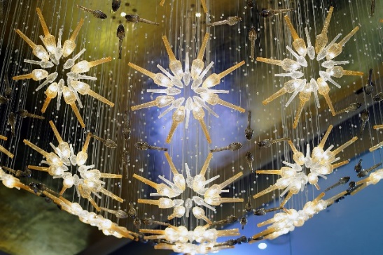 Suspended from the ceiling in the corridor connecting ICONSIAM and ICONLUXE is “Joy,” a massive one-of-a-kind glass chandelier designed by Petra Junová of LASVIT, a design and manufacturing company from the Czech Republic. Drawing inspiration from Thailand’s world-renowned hospitality and its global reputation as the “Land of Smiles,” the chandelier takes the form of a traditional Phuang Malai – a Thai garland made with milkweed flowers and jasmine symbolizing generosity and hospitality, welcoming visitors to ICONSIAM and reminding them of heart-warming Thai smiles.