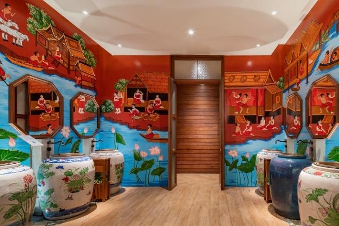 Having made a splash on social media, ICONSIAM’s restrooms are artistic showcases, with each featuring a distinct style. Thanks to their exceptional designs, they were named as “Bangkok’s Best Public Restrooms” by the Bangkok Metropolitan Administration in 2019 and later as “ASEAN-standard public toilets” by the Department of Tourism, Ministry of Tourism and Sports in 2021. The most prominent among these restrooms is the one in the central and northeastern section of the SOOKSIAM Zone on G Floor, where Wasinburee Supanichvoraparch, the heir of Ratchaburi’s legendary ceramic factory “Tao Hong Tai Ceramics Factory,” painstakingly painted each handcrafted earthen jar to achieve perfect designs, creating one-of-a-kind artifacts art pieces with immense historical value. In addition, the restroom walls feature contemporary Thai paintings by Hooker’s Green, depicting the traditional way of life in each region of Thailand, creating another spot where visitors can take photos and appreciate the Thai way of life in the past.