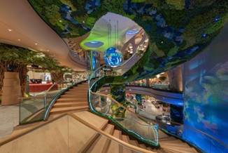 Climb, twist, and unwind through The Living Spiral, NEXTOPIA’s spiraling staircase that winds upward through forest scents, upcycled textures, and recycled art, creating a lush vertical journey that connects levels 4, 5, and 5A in a nature-infused flow. Every turn brings a new delight as art, nature, and sustainability swirl together, transforming a simple ascent into an experience that refreshes both mind and spirit.