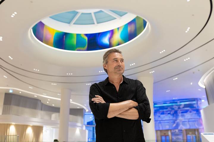 ศิลปินชาวฝรั่งเศส รังสรรค์ผลงานทรงวงกลมคล้ายวงล้อทฤษฎีสี (color wheel) แรงบันดาลใจจากแสงเหนือ ที่ใช้เทคนิคการทำเฉพาะตัวด้วยการป้อนข้อมูลในระบบอัลกอริทึมในคอมพิวเตอร์ให้เกิดเหตุขัดข้อง เกิดผลลัพธ์เป็นลายเส้นที่มีการซ้อนกันของเฉดสีที่คาดเดาไม่ได้ ประกอบกับความสว่างจากแสงธรรมชาติเกิดเป็นความงามของชิ้นงานที่เปลี่ยนไปตามช่วงเวลาของวัน