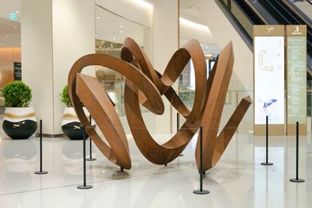 Cascading Melody, by American sculptor John Helton. Artist conveys dynamism that captures the interconnectedness of all things through intersecting curved lines, offering a completely different perspective from every angle.