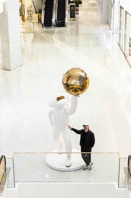 The Future in Our Hand - designed by Jamie Hayon. An installation exclusively for Siam Paragon, this inspiring sculpture represents how people can realize their hopes and dreams through their own actions. The sculpture features the artist’s signature monkey character gazing into a reflective spherical object.