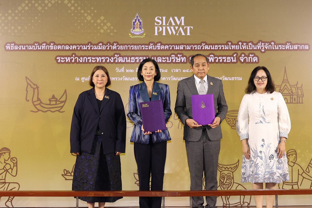 Bangkok (October 10, 2025) – Siam Piwat Co., Ltd., a leading real estate and retail business developer in Thailand, has signed a memorandum of understanding (MOU) with the Ministry of Culture to collaboratively promote and advance Thailand’s creative cultural industry, thus sustainably bolstering and transforming its cultural heritage and local wisdom into its soft power on the global stage.