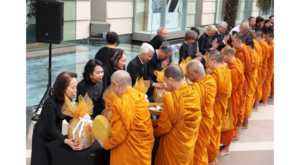 On October 30, 2025, Siam Piwat Group and Siam Paragon Development Co., Ltd., led by the Board of Directors, executives, and employees, together with public and private sector partners, and retail tenants within the shopping centers, offered alms to 93 monks to mark the seventh day (Sattamawara) since the passing of Her Majesty Queen Sirikit the Queen Mother. Following the alms-giving ceremony, participants paid their respects before the royal portrait of Her Majesty Queen Sirikit the Queen Mother, expressing their profound gratitude for her boundless and immeasurable royal grace. The ceremony was held at Parc Paragon, M Floor, Siam Paragon.