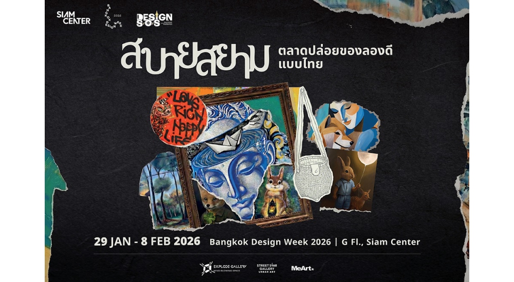 - Sign of Siam: Presented under the theme “DESIGN S/O/S,” this exhibition features the works of four artists, namely Thongchai Srisukprasert, Pathompong Buchabutara, Yee Duangtip, and Wanda Chaima, capturing the Thai identity as a living cultural force, thereby creating opportunities and expanding the boundaries of possibilities in contemporary society. Visit the exhibition at ICONSIAM Park, 2nd Floor.