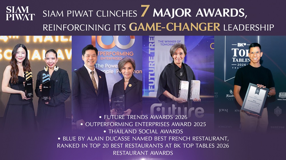 Bangkok (March 9, 2026) – Siam Piwat Group has secured seven honors from prestigious national and international organizations, reinforcing its position as a game changer and a pioneer of world-class destinations that have won the hearts of people across the globe. These accolades underscore Siam Piwat Group’s impactful leadership, organizational strength, robust brand, and unparalleled ability to deliver world-class experiences.