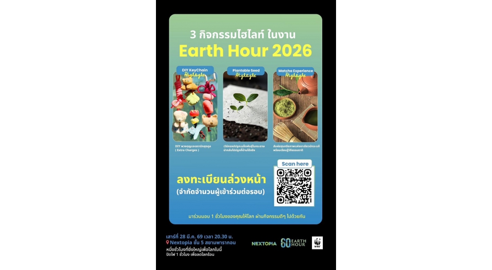 การจัดงานในปีนี้มีความพิเศษยิ่งขึ้น เนื่องจากจัดขึ้น ณ NEXTOPIA ซึ่งเป็น “เมืองต้นแบบแห่งโลก อนาคต” ที่ได้รับการรับรองมาตรฐานสากลระดับโลกอย่าง EDGE Advanced ด้านการประหยัดพลังงาน และมาตรฐาน Fitwel ที่สะท้อนถึงการออกแบบพื้นที่ที่ส่งเสริมสุขภาวะที่ดีของผู้ใช้งาน นอกจากนี้ NEXTOPIA ยังโดดเด่นด้วยนวัตกรรม Floor Radiant Cooling และเป็นพื้นที่ที่ใช้พลังงานสะอาด 100% ในปี 2026 นี้ ทำให้การจัดงาน Earth Hour ณ ที่แห่งนี้ไม่ใช่เพียงแค่การรณรงค์ แต่คือการพิสูจน์ให้เห็นว่า พื้นที่ค้าปลีก ระดับโลก สามารถดำเนินกิจกรรมควบคู่ไปกับการรักษาโลกได้อย่างสมบูรณ์แบบ
